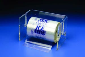 Ice Aide Dispenser can be wall mounted or can stand on a counter or shelf.
