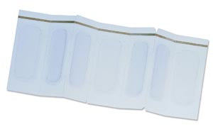 Clear adhesive hydrogel formula gently yet firmly secures catheters, I.V. lines, and lead wires to infant's skin. Tapes may be repositioned and reapplied without irritating or damaging skin. Available in individually packaged tape strips or on a roll.